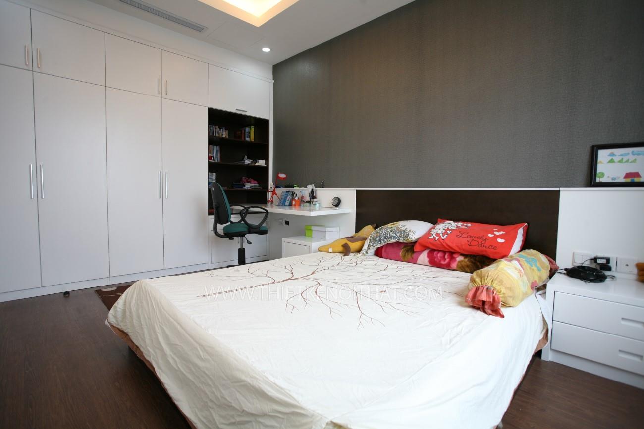 Phòng ngủ Master được thiết kế cho gia chủ với hoa văn, họa tiết tinh tế qua đó thể hiện được sự sang trọng và tinh tế trong việc phối màu và hoa văn của chăn ga trên giường. không gian phòng ngủ vô cùng ấn tượng sẽ giúp gia chủ có những giấc ngủ ngon và sâu.