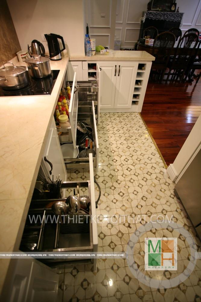 Đặt chân tới không gian bếp điều đầu tiên khiến bạn nhận thấy là sự tiện nghi, sang trọng và vô cùng ngăn nắp. Với thiết kế phòng bếp hiện đại, gia đình anh tuấn đã sở hữu một căn bếp với những điều ấn tượng nhất. Sự tiện nghi là điều rất cần thiết đối với căn bếp bởi không gian này chính là nơi mà các mẹ, các chị trổ tài nấu những bữa cơm ngon cho gia đình. Và căn hộ này đã được thiết kế để đáp ứng nhu cầu cần thiết đó.