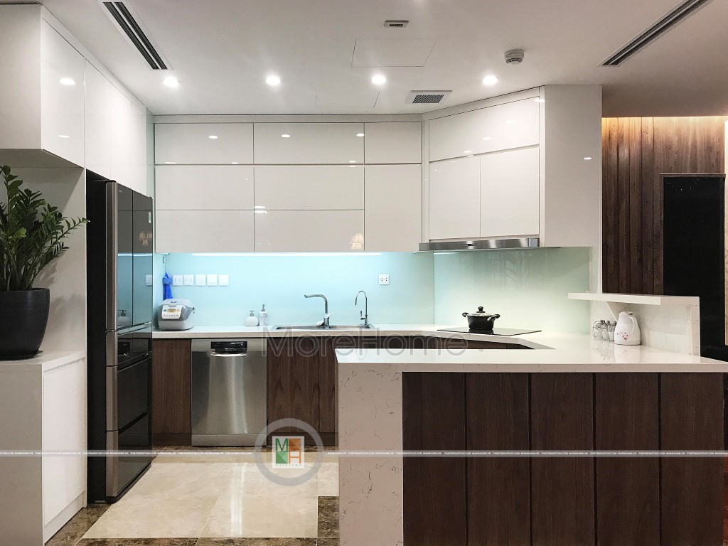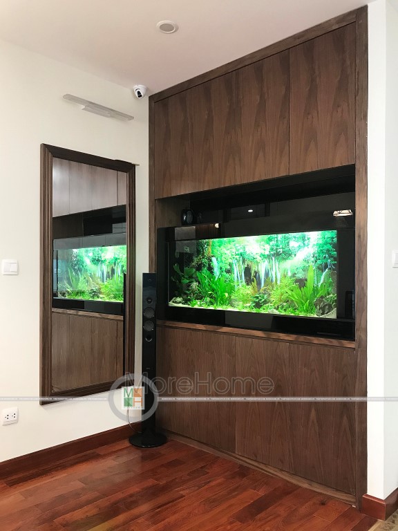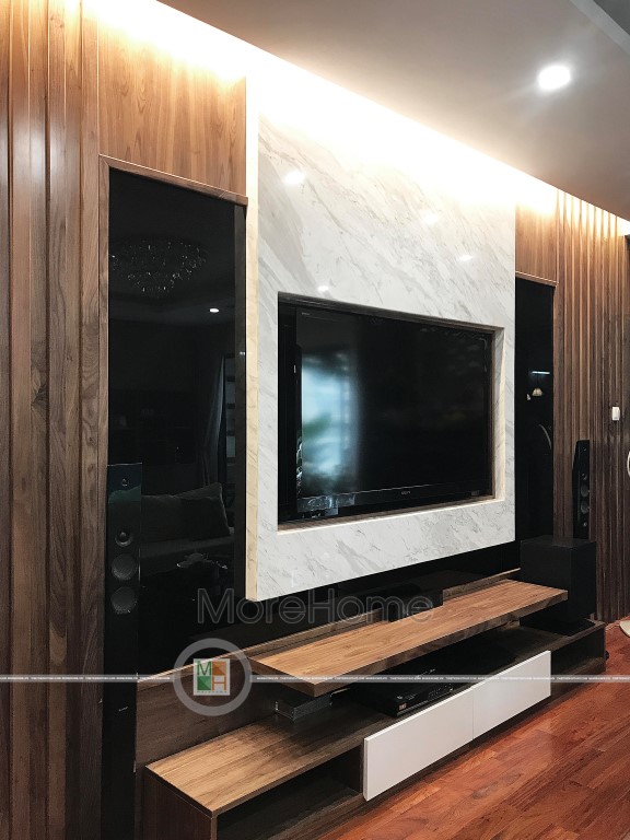 Thi công nội thât chung cư tại chung cư imperia garden, sử dung gỗ công nghiệp verneer óc chó kết hợp gỗ óc chó tự nhiên