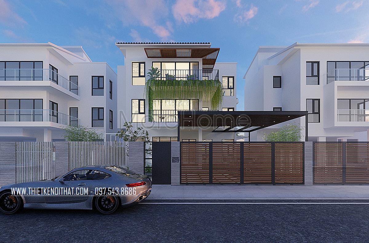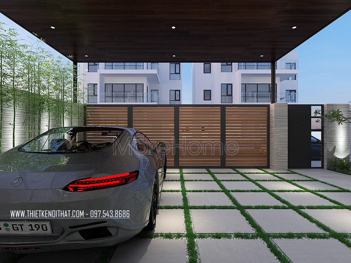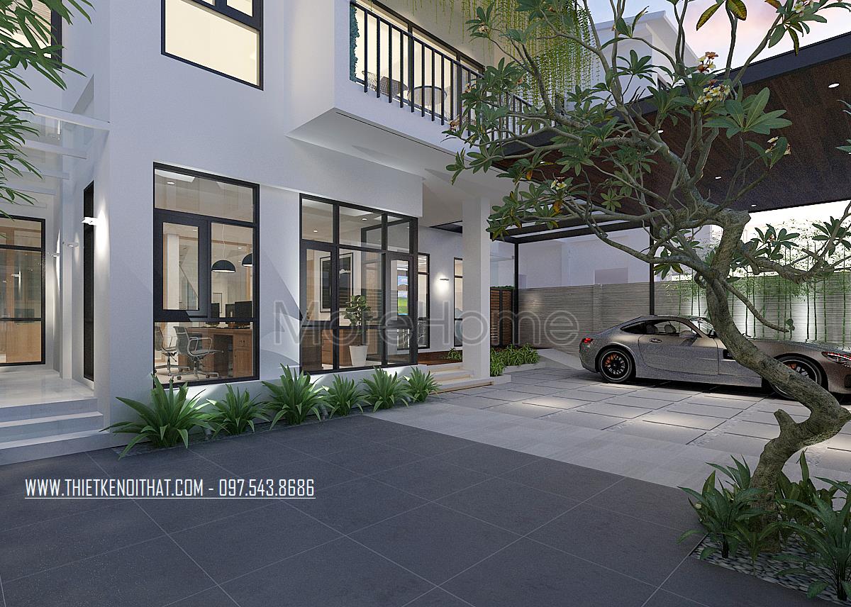 Thiết kế không gian ban công mở là nơi thu hút nhất đối với gia chủ. Với đặc điểm view rộng với không gian vô cùng dễ chịu giúp gia chủ thư giãn sau một ngày dài làm việc. Thiết kế ghế tựa sử dụng vật liệu tre đan khá đơn giản và tiện dụng, dễ dàng thay thế, di chuyển khi cần thiết. Phía trên mái che là thiết kế thanh ngang gỗ xếp ấn tượng vừa đảm bảo tính công năng lại tạo điểm nhấn cho thiết kế.