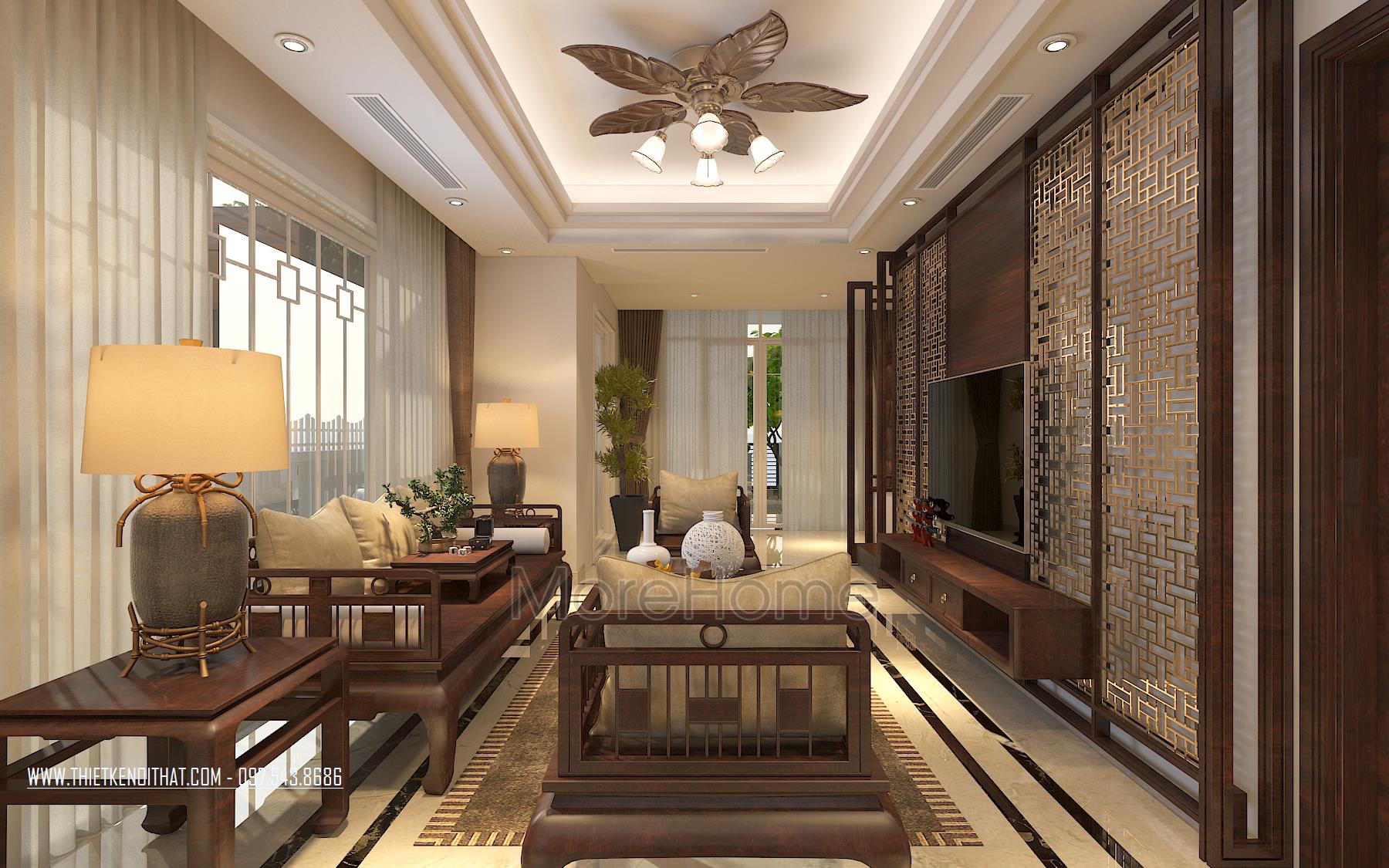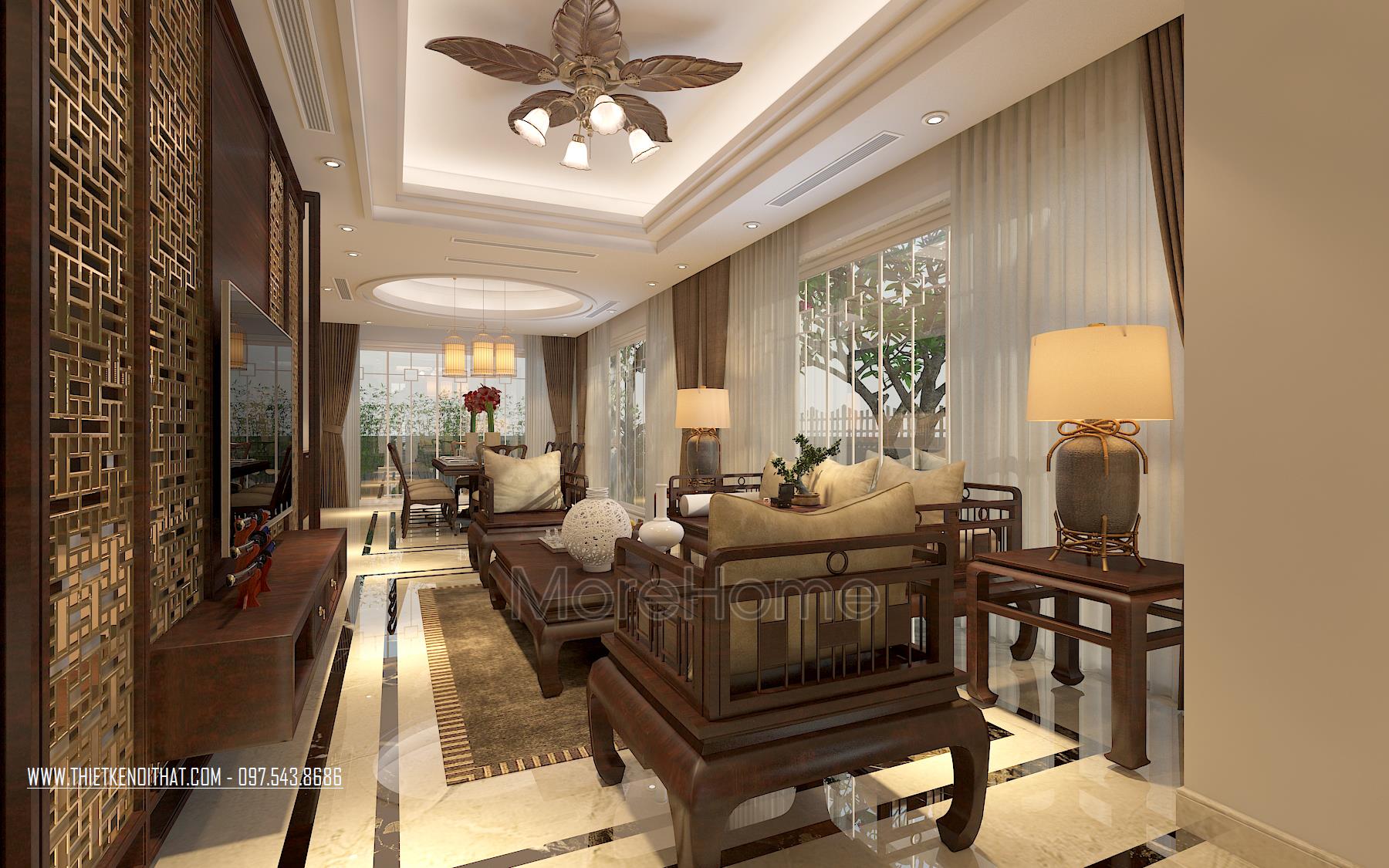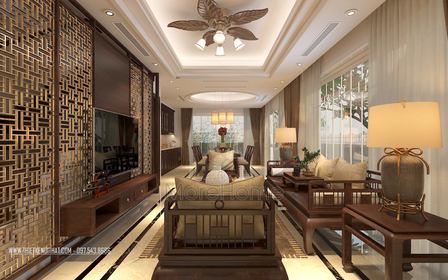Thiết kế nội thất phòng khách biệt thự phong cách hiện đại trong biệt thự Vinhomes Thăng Long