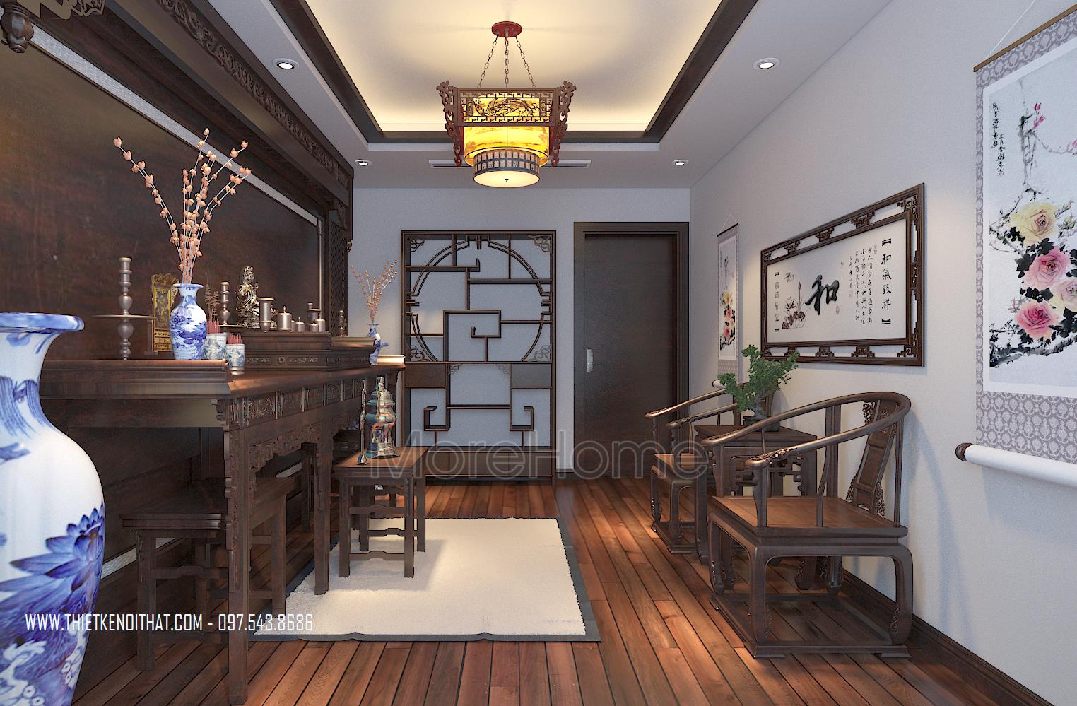 Thiết kế nội thất phòng thờ nghiêm trang và tinh tế