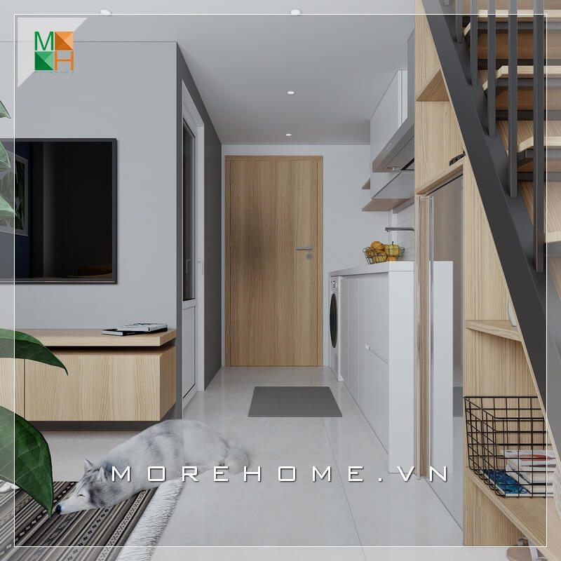 Cửa gỗ 1 cánh nhẹ nhàng, tinh tế với gam màu vàng góp phần tạo nên không gian mới, sạch sẽ.