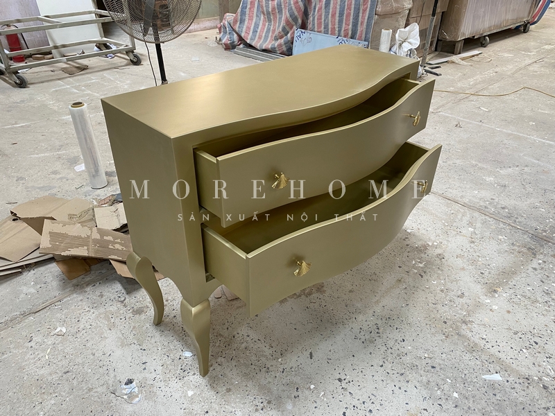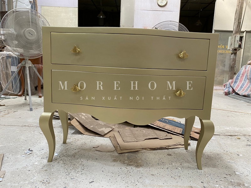 Morehome, một xưởng nội thất, đã sản xuất ra một loại tab đầu giường gỗ tự nhiên tân cổ điển với kiểu dáng sang trọng, quý phái những đường nét tỉ mỉ. Nó sẽ mang lại cho không gian tiện nghi và cao cấp.