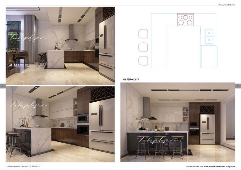 Phòng bếp được trang trí đẹp mắt, sang trọng và tiện nghi.