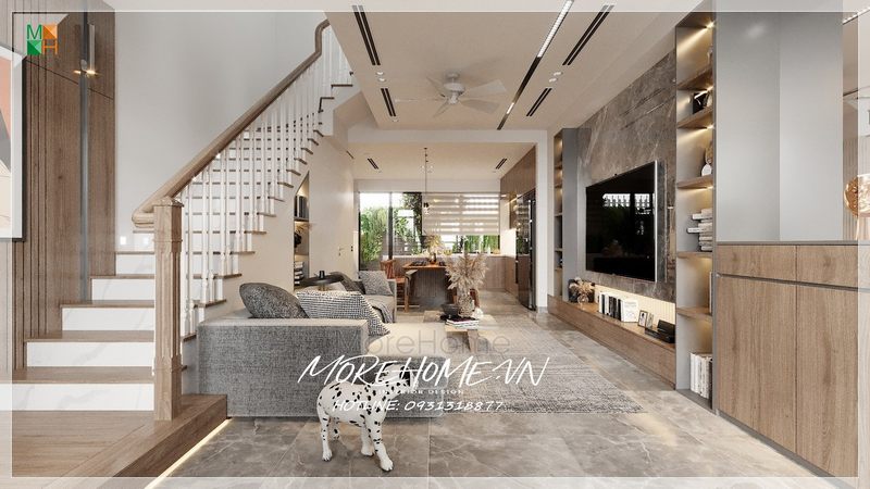 Đây là công trình hoàn thiện nội thất phòng khách tại biệt thự cao cấp Vinhomes Riverside Long Biên, Hà Nội.