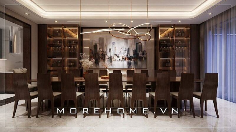 Bạn sẽ bị lôi cuốn bởi một mẫu thiết kế bàn ghế ăn gỗ óc chó cao cấp có kích thước lớn lên đến 18 ghế, tạo nên một không gian phòng ăn hoàng gia, đẳng cấp và sang trọng.
