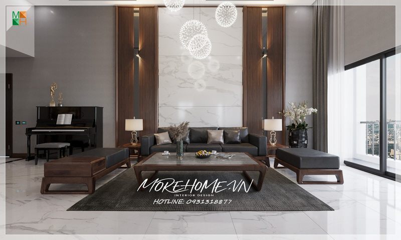 Việc thi công nội thất gỗ óc chó theo phong cách tân cổ điển sang trọng cao cấp sẽ góp phần tôn lên vẻ đẹp của không gian phòng khách và cung cấp sự tiện nghi cho sử dụng của gia chủ.