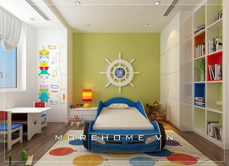 Mẫu giường ngủ mang lại sự độc đáo với thiết kế hình ô tô giúp bé trai biểu thị cá tính của mình trong phòng ngủ.